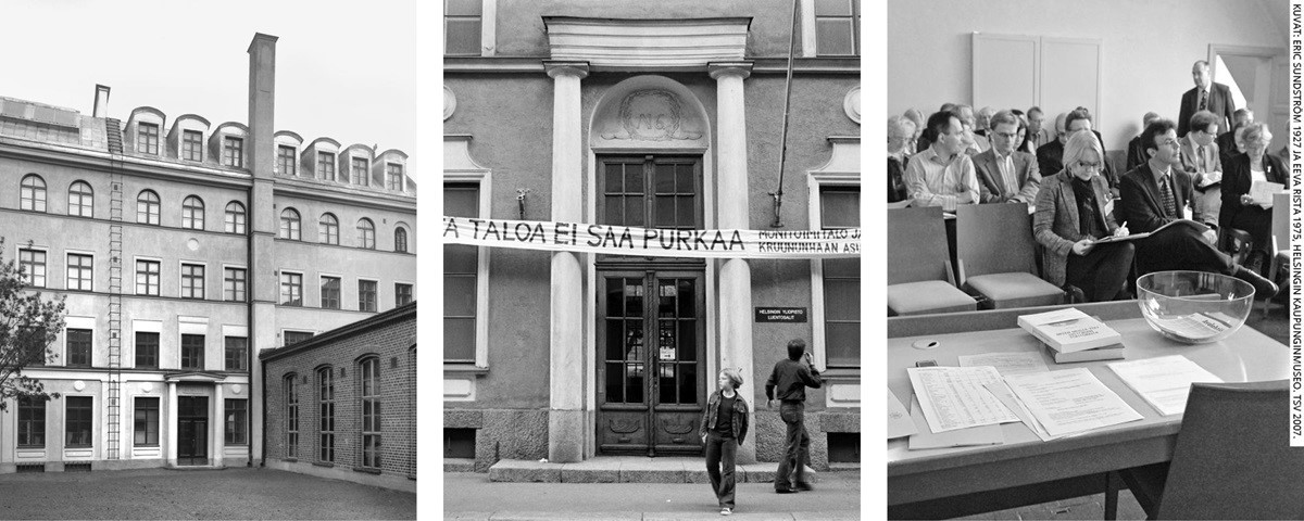 Kuvia Tieteiden talolta vuosilta 1927, 1975 ja 2007. Kuvat: Eric Sundström / Helsingin kaupunginmuseo; Eeva Rista / Helsingin kaupunginmuseo; TSV.